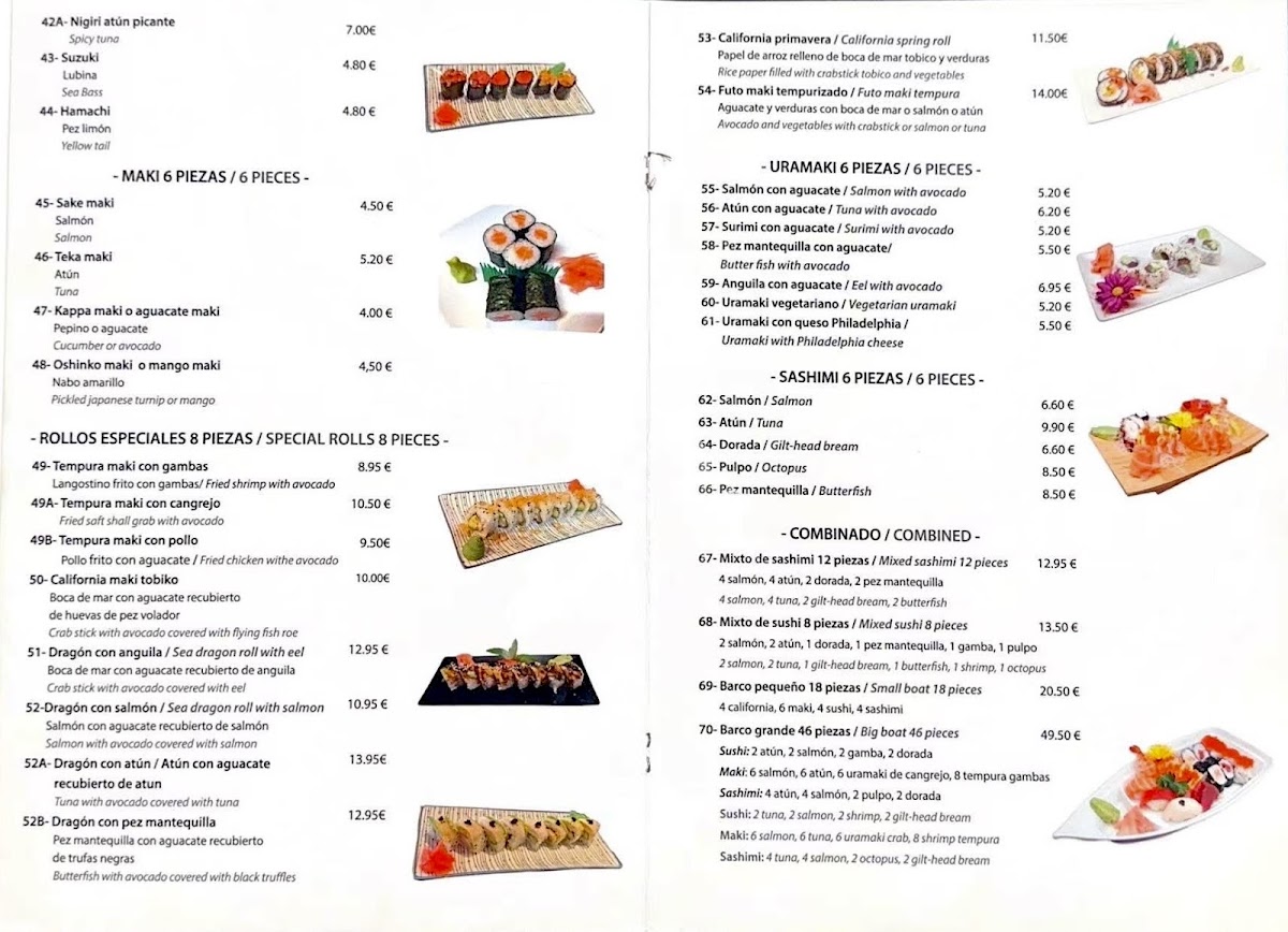 Restaurante Japonés - TOKYO in Marbella offers an authentic Japanese dining experience that truly stands out. Their menu features a variety of fresh, expertly crafted dishes, with sushi as the undeniable highlight. Customers rave about the exceptional quality of the sushi, often comparing it favorably to prestigious international names. The dragon roll with salmon is a must-try, praised for its vibrant flavors and perfect execution. Alongside sushi, the menu del día offers three small but satisfying dishes, providing a balanced glimpse into traditional Japanese cuisine. The miso soup is another standout, warming and flavorful, showcasing the kitchen’s attention to detail. The intimate, family-run atmosphere creates a welcoming space that feels both relaxed and genuine. Service is attentive and friendly, enhancing the overall experience. For those seeking fresh, high-quality Japanese dishes in Málaga, Restaurante Japonés - TOKYO delivers delightful flavors and a heartfelt hospitality that keeps locals and visitors returning.